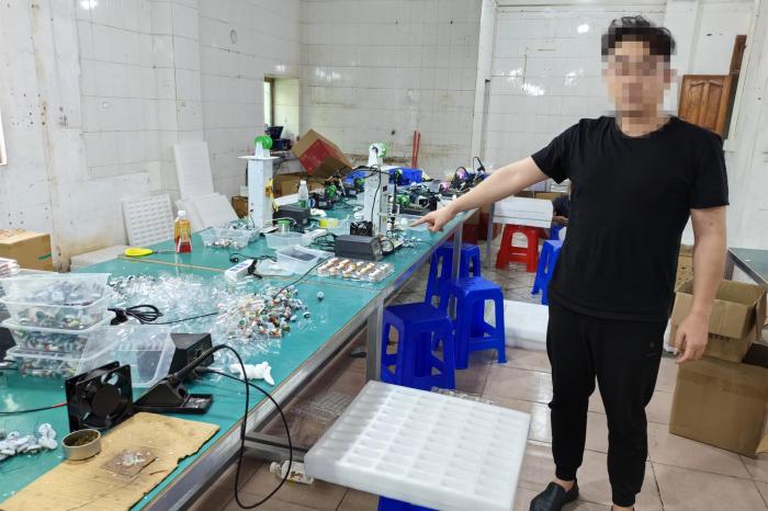 楚江分局立即抽调精干警力组成专案组,对案件开展全面侦办。民警调查发现,这些伪劣电子烟的发货分别来自深圳和江西两地。民警立即对两地涉案的4名嫌疑人进行抓捕,通过审讯得知,其4人只是下层代理,上线另有其人。民警随即对深圳和江西货源进行上游溯源,查明这两地的伪劣电子烟发源地均为广东中山,据此民警推断广东中山应为伪劣电子烟的生产源头,专案组立即远赴广东中山开展调查。