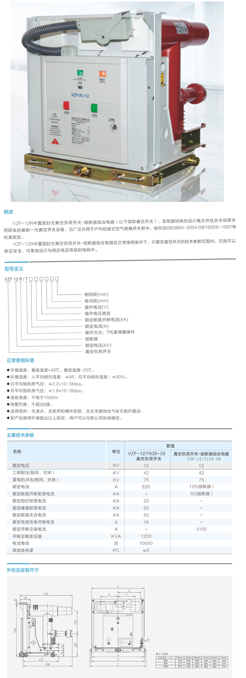 VZF-12R 移开式真空负荷开关熔断器组合电器